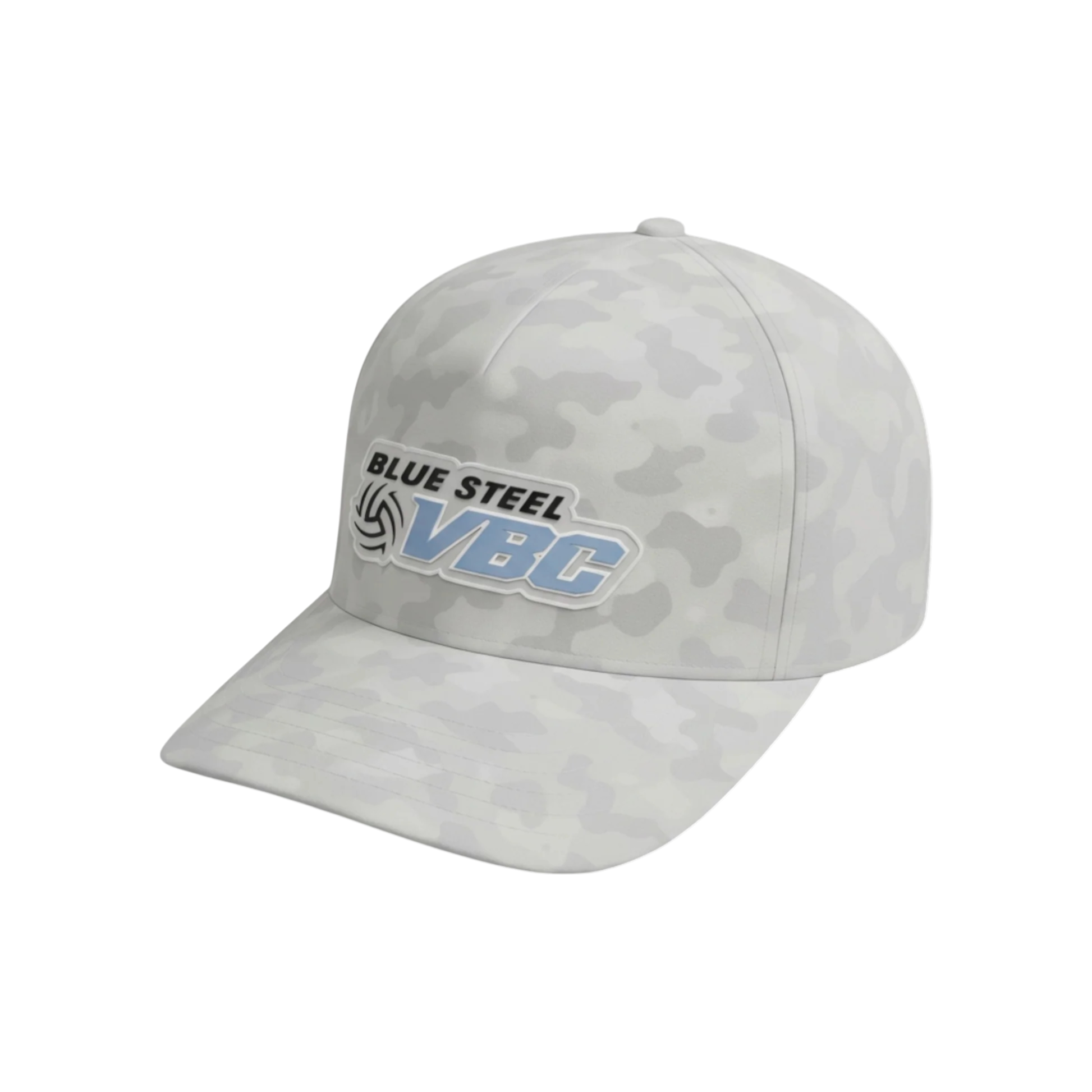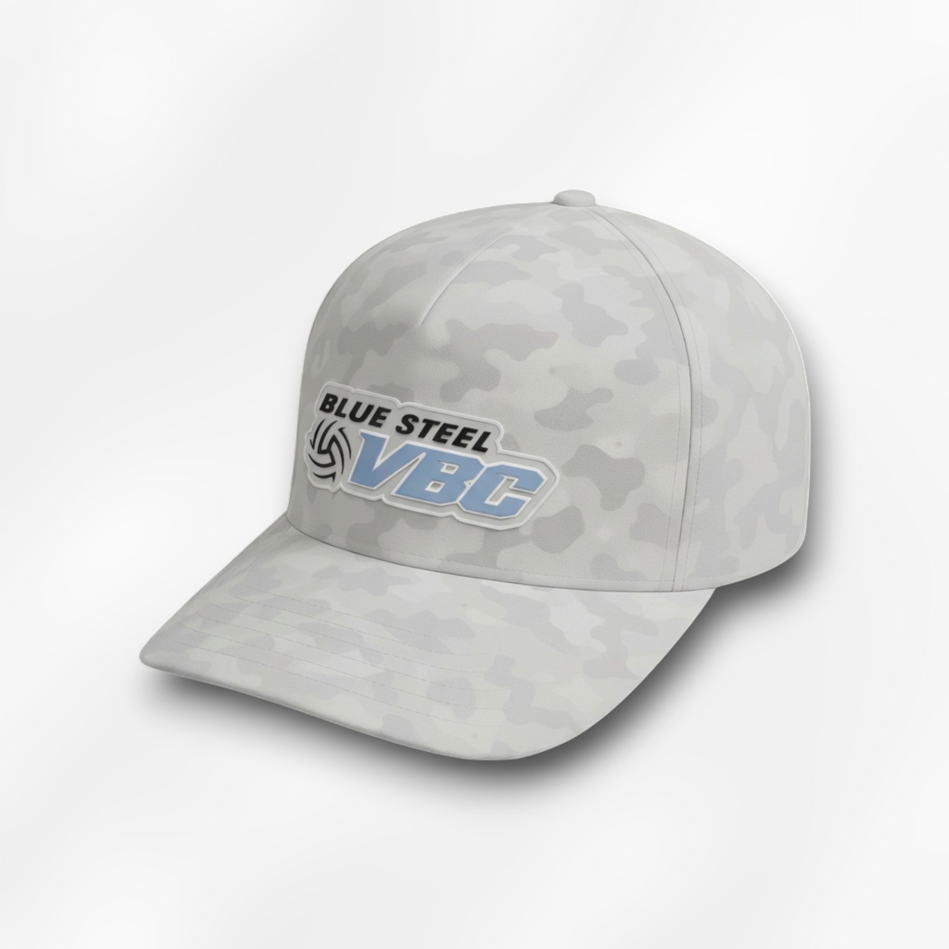 This limited-edition drop features a sleek tonal camo pattern and a raised silicone Blue Steel VBC front patch for a bold, elevated finish. A premium Aura Golf silicone patch is placed on the side/back for a signature touch that ties the collaboration together.