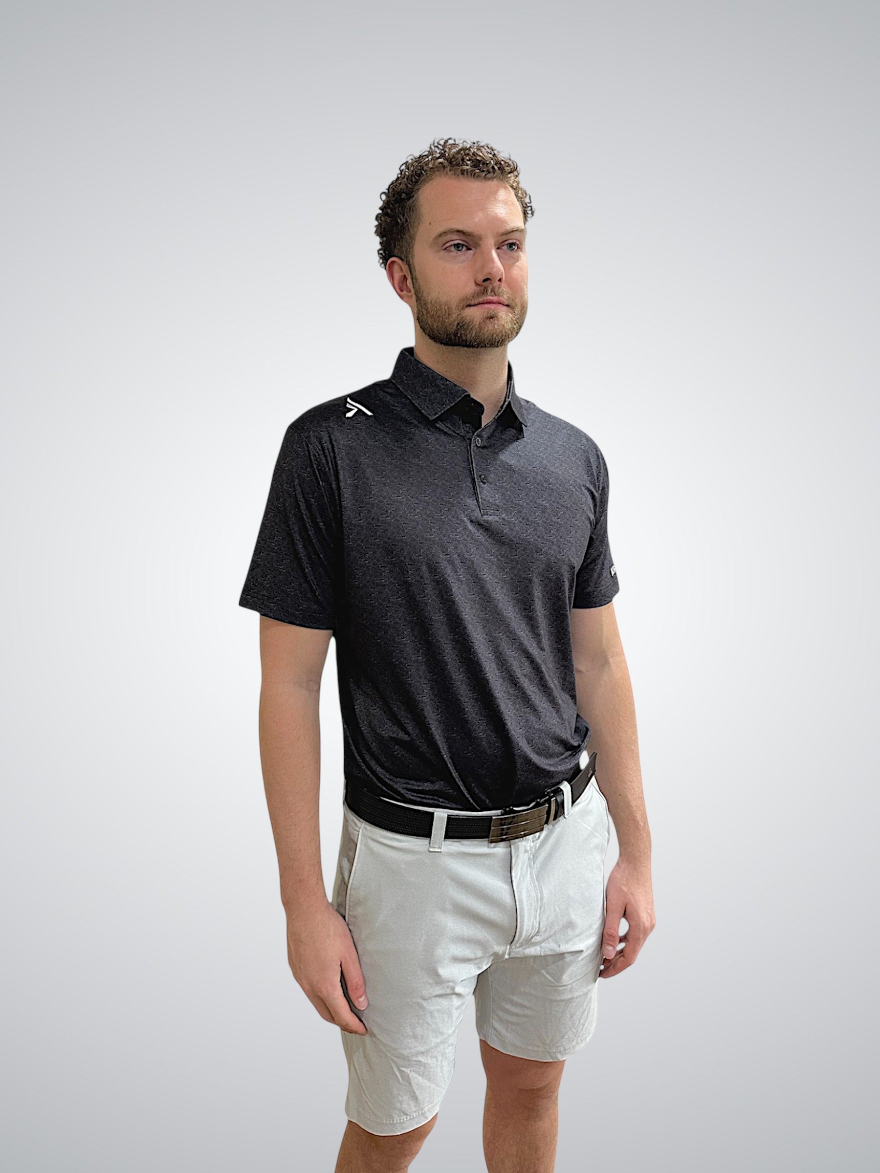 The Classic Obsidian Polo is your foundation for quiet dominance—refined, structured, and built to move. With its deep charcoal heathered tone and clean silhouette, this piece is crafted for players who don’t need to shout to be seen. Engineered with 4-way stretch and advanced sweat-wicking technology, it keeps you cool, dry, and in control.